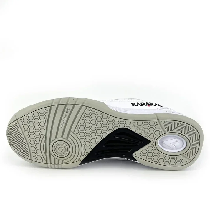 - der verbesserte Schuh von court Karakal KF Prolite verfügt nun über ein Schnürsenkelstützsystem, das mit langfaserigen Mikrofasern verstärkt ist, um dem Schuh eine bessere seitliche Unterstützung und eine höhere Widerstandsfähigkeit zu verleihen